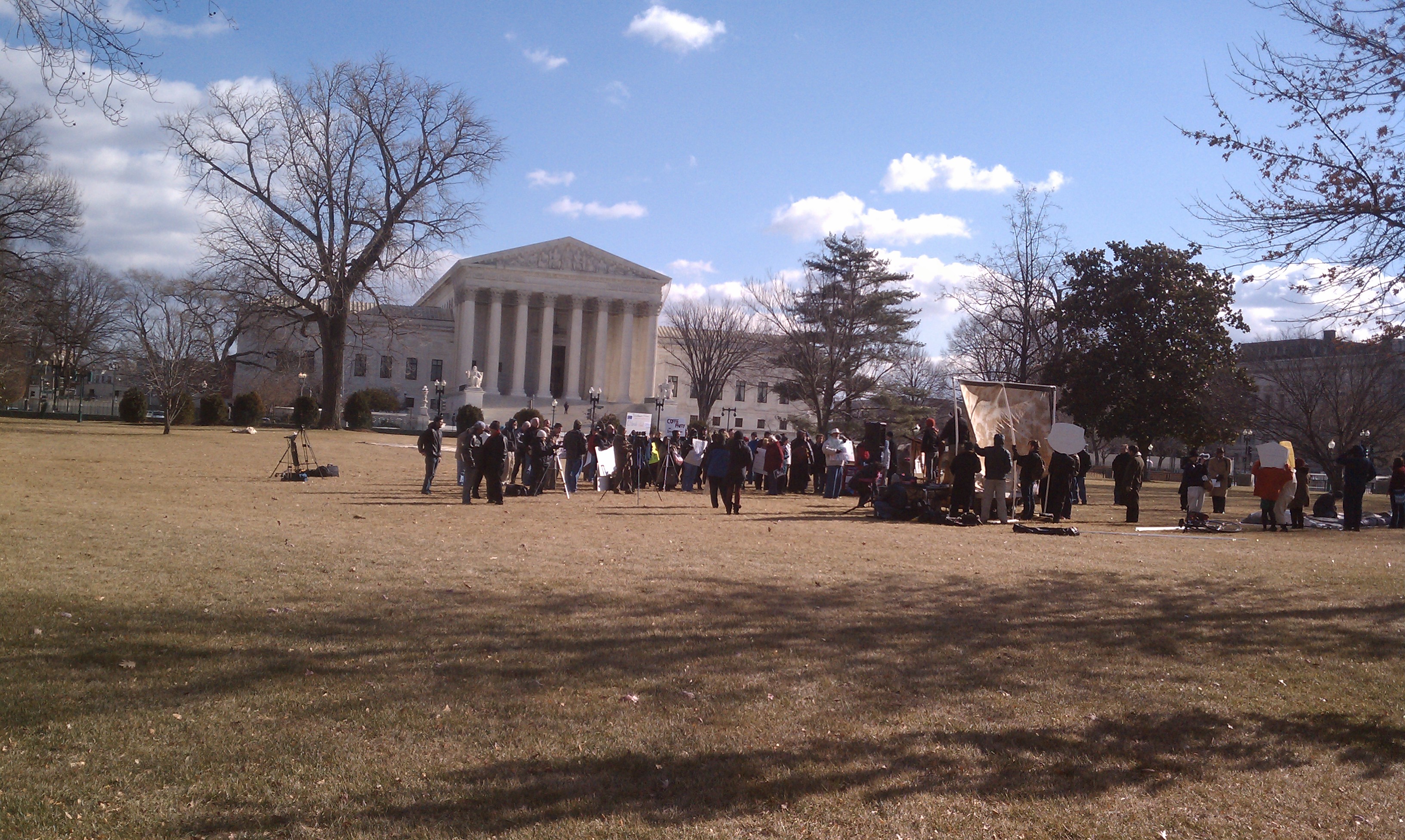 Protesters gathered outside the Supreme Court today to lament the Citizens United v. FEC ruling, issued a year ago today.